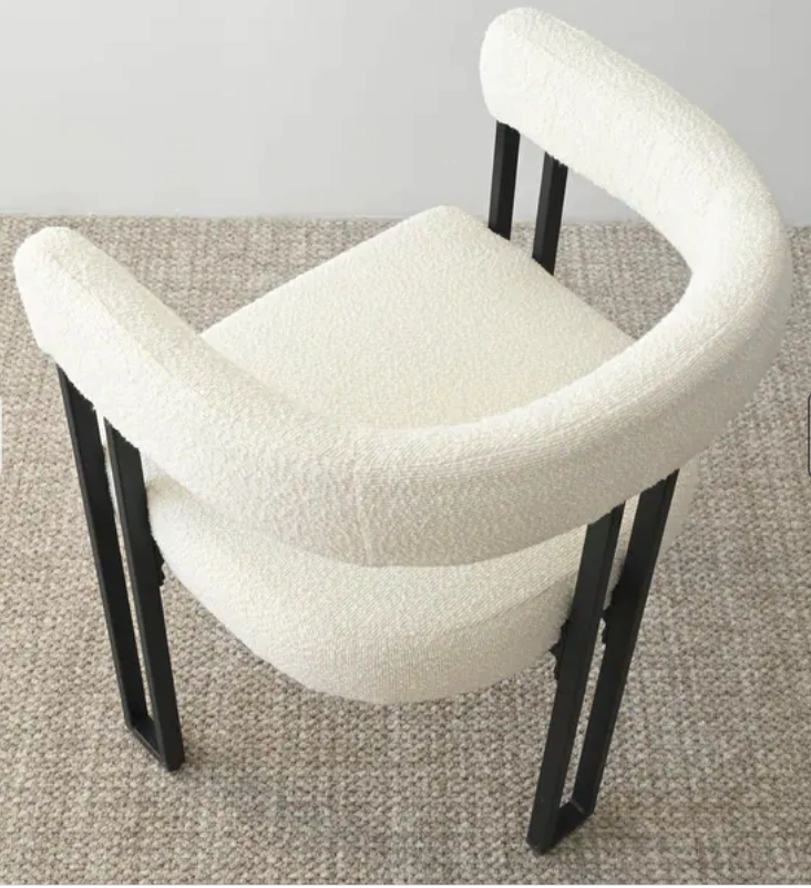 A Cadeira de Jantar com Braço Bouclé Grécia é o equilíbrio perfeito entre design contemporâneo, conforto absoluto e estrutura robusta. Seu estofado em tecido bouclé oferece uma textura suave e elegante, enquanto a base metálica preta garante firmeza e durabilidade para o uso diário.