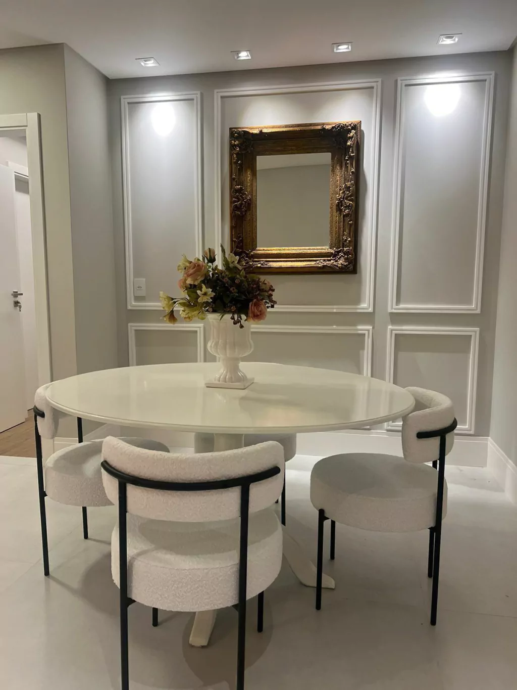 O tecido Boucle oferece uma textura única e sofisticada, trazendo um toque de elegância e conforto incomparáveis.