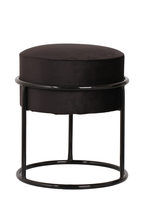 Puff Redondo de Veludo com Base Preta – Argola Black Decorativo